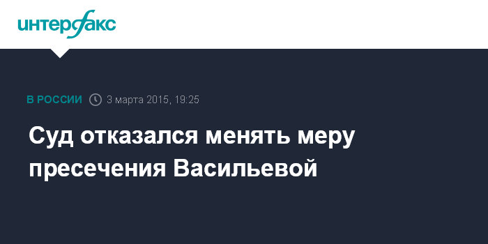 Суд отказался менять меру пресечения Васильевой