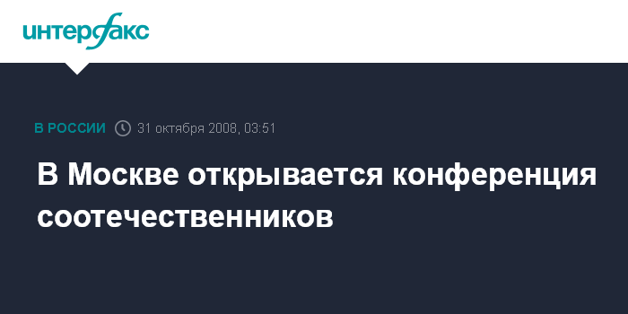 Москва. 31 октября. ИНТЕРФАКС - Всемирная конференция соотечественников, живущих за рубежом, начинает свою работу в пятницу в Москве.
