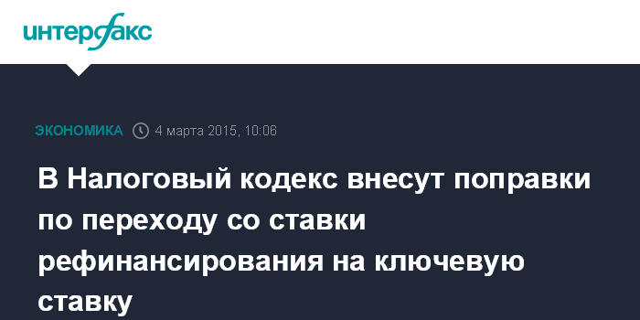 В Налоговый кодекс внесут поправки по переходу со ставки рефинансирования на ключевую ставку