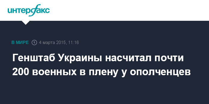 Генштаб Украины насчитал почти 200 военных в плену у ополченцев