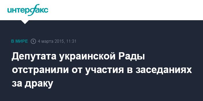 Москва. 4 марта. INTERFAX.RU - Инициатора драки при участии народных депутатов Сергея Мельничука и Олега Ляшко решено не допускать к участию в следующих пяти пленарных заседаниях, заявил спикер парламента Владимир Гройсман.