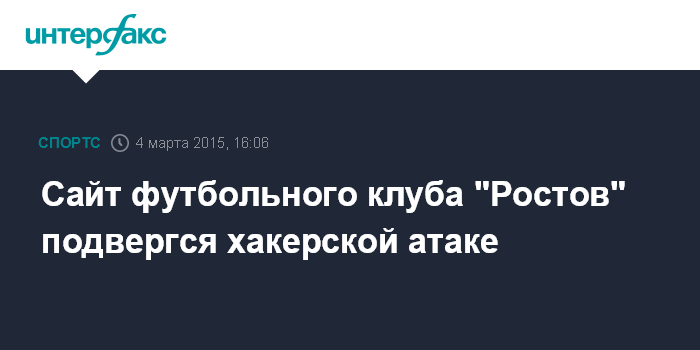 Москва. 4 марта. INTERFAX.RU - Футбольный клуб "Ростов" обратился в правоохранительные органы из-за хакерной атаки на официальный сайт ФК.