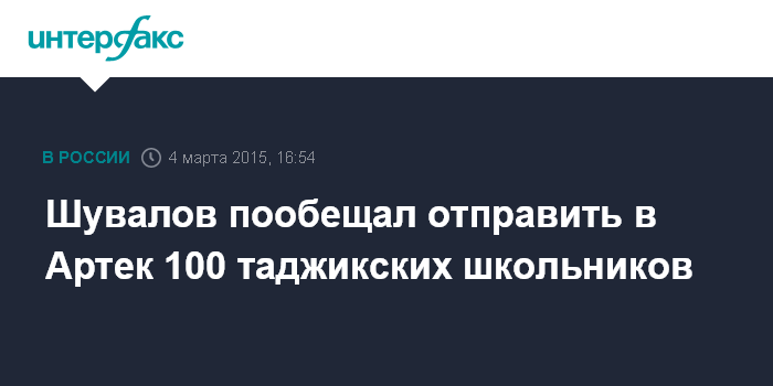 Шувалов пообещал отправить в Артек 100 таджикских школьников