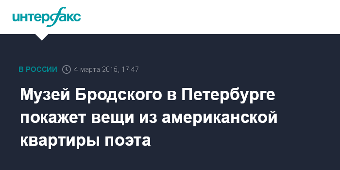 Москва. 4 марта. INTERFAX.RU - Личные вещи Иосифа Бродского из его квартиры в Нью-Йорке войдут в экспозицию музея поэта, который откроется в мае на Литейном проспекте в Петербурге.
