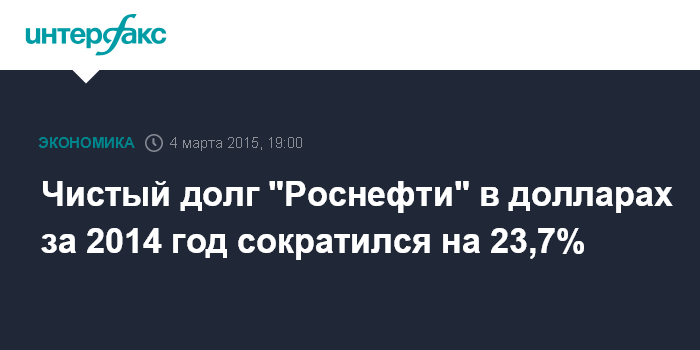Чистый долг "Роснефти" в долларах за 2014 год сократился на 23,7%