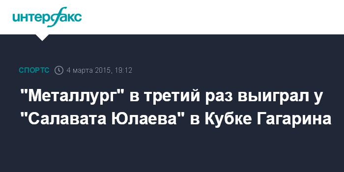 Москва. 4 марта. INTERFAX.RU - Хоккеисты магнитогорского "Металлурга" добились третьей победы над уфимским "Салаватом Юлаевым" в серии 1/8 финала Кубка Гагарина КХЛ.