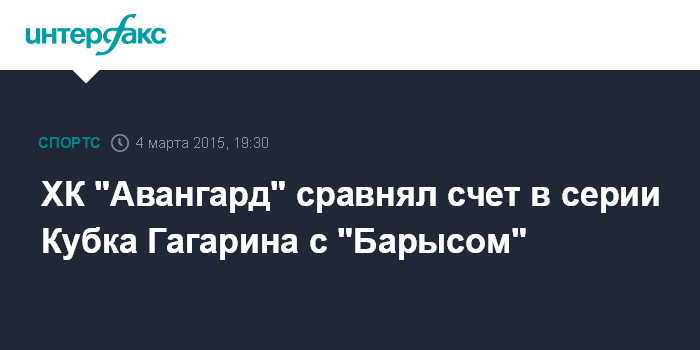 Москва. 4 марта. INTERFAX.RU - Хоккеисты омского "Авангарда" добились победы над "Барысом" в Астане в четвертом матче серии 1/8 финала Кубка Гагарина КХЛ.