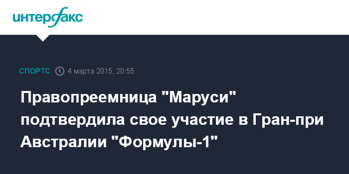 Москва. 4 марта. INTERFAX.RU - Команда "Манор", ранее выступавшая под названием "Маруся", подтвердила свое участие в Гран-при Австралии - стартовом этапе чемпионата мира по автогонкам "Формула-1" в 2015 году.
