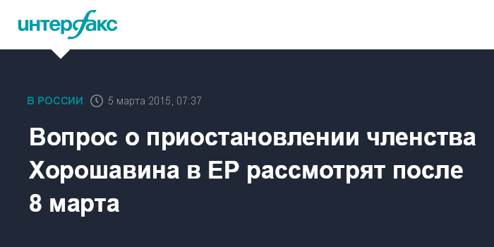 Вопрос о приостановлении членства Хорошавина в ЕР рассмотрят после 8 марта