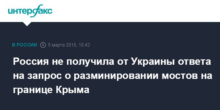 Москва. 5 марта. INTERFAX.RU - Украинская сторона не отреагировала на обращение Пограничного управления ФСБ России по республике Крым с просьбой разминировать автомобильные мосты между Крымом и Украиной, сообщил в четверг "Интерфаксу" представитель пресс-службы управления.