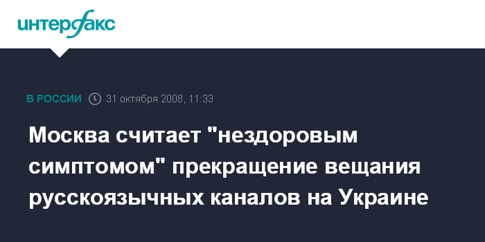 Москва. 31 октября. INTERFAX.RU - В Москве считают нездоровым симптомом и нарушением прав русскоязычного населения решение властей Украины прекратить с 1 ноября вещание русскоязычных телеканалов.