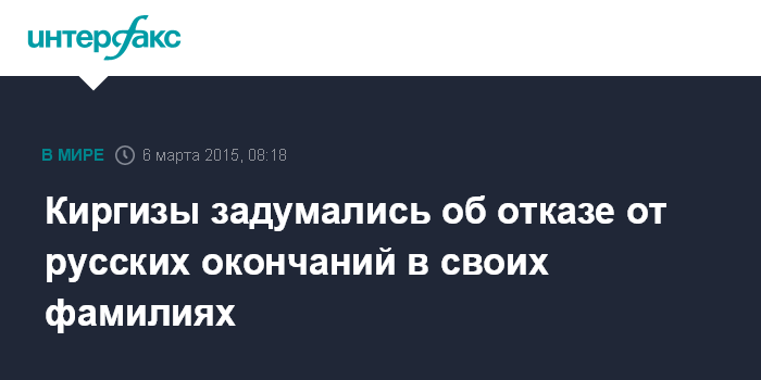 Москва. 6 марта. INTERFAX.RU – Депутат проправительственной фракции Киргизии "Ар-Намыс" (Достоинство) Нуркамил Мадалиев предлагает отказаться от написания киргизских фамилий по русской традиции.