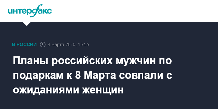 Планы российских мужчин по подаркам к 8 Марта совпали с ожиданиями женщин