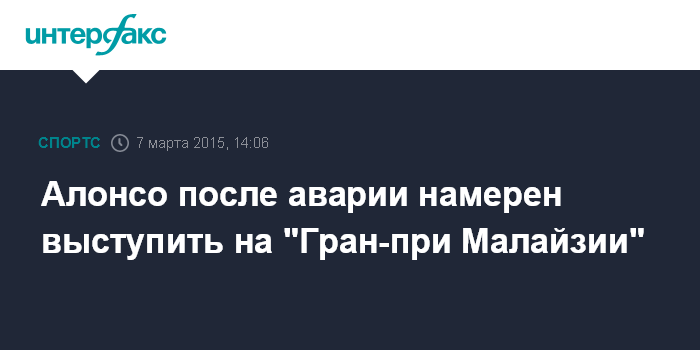 Алонсо после аварии намерен выступить на "Гран-при Малайзии"