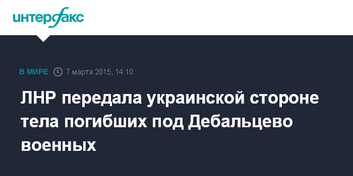Москва. 7 марта. INTERFAX.RU - Украинской стороне в присутствии представителей мониторинговой миссии ОБСЕ в субботу передаются восемь тел погибших под Дебальцево военнослужащих, сообщил начальник штаба Народной милиции самопровозглашенной Луганской народной республики Сергей Козлов.