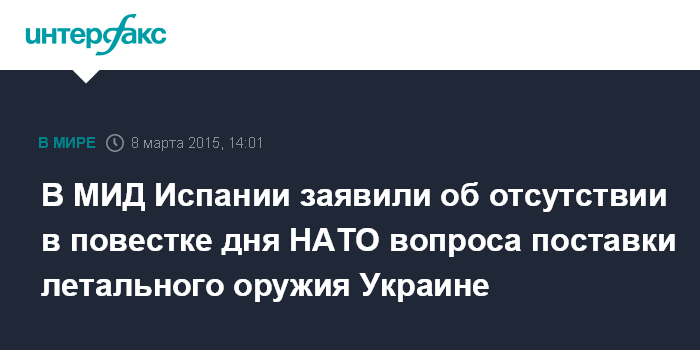 В МИД Испании заявили об отсутствии в повестке дня НАТО вопроса поставки летального оружия Украине