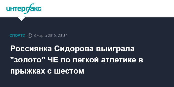 Москва. 8 марта. INTERFAX.RU - Российская легкоатлетка Анжелика Сидорова завоевала золотую медаль на чемпионате Европы в помещении в соревновании по прыжкам с шестом.