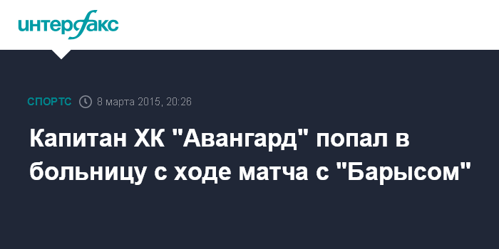 Москва. 8 марта. INTERFAX.RU - Капитан омского ХК "Авангард" Сергей Калинин получил травму головы в шестом матче 1/8 финала плей-офф Кубка Гагарина.