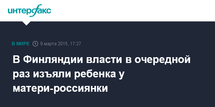 Москва. 9 марта. INTERFAX.RU - Власти Финляндии изъяли ребенка у матери россиянки.