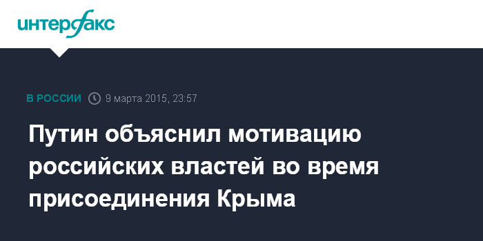 Москва. 9 марта. INTERFAX.RU - Президент РФ Владимир Путин заявил, что возвращение Крыма в состав России в марте прошлого года не являлось целью российского руководства.