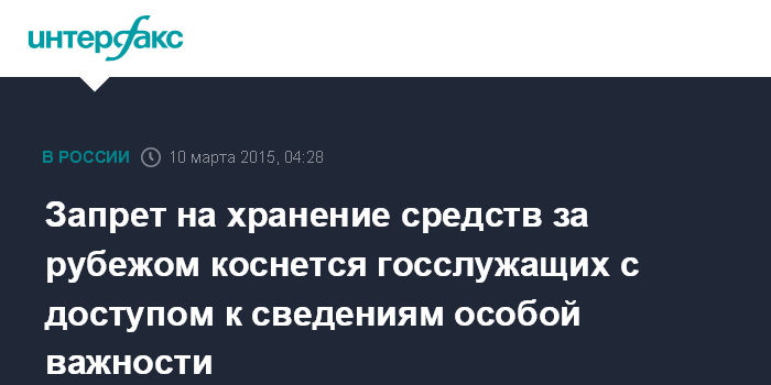 Запрет на хранение средств за рубежом коснется госслужащих с доступом к сведениям особой важности