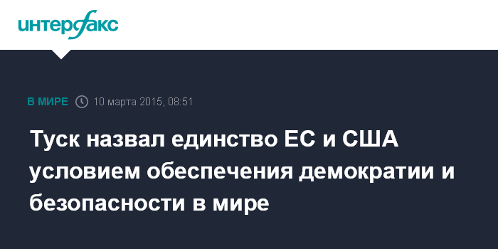 Москва. 10 марта. INTERFAX.RU - Председатель Европейского Совета Дональд Туск заявил, что единство США и Евросоюза в настоящее время более необходимо, чем когда-либо прежде.