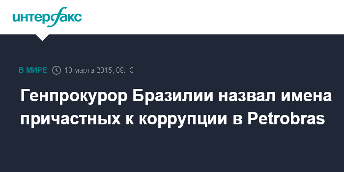 Москва. 10 марта. INTERFAX.RU - Генеральный прокурор Бразилии Родриго Жано назвал фамилии десятков людей, включая высокопоставленных политиков, которых он считает причастными к коррупции в нефтяной госкорпорации Petroleo Brasileiro (Petrobras), сообщает BBC.