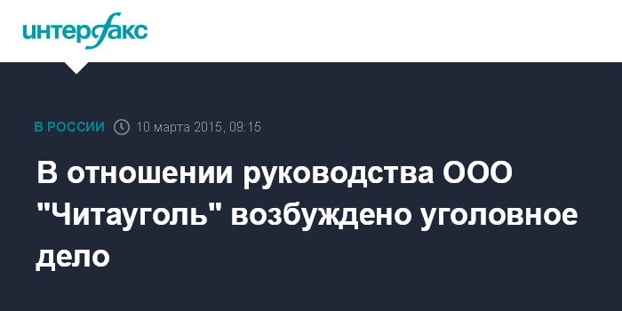 В отношении руководства ООО "Читауголь" возбуждено уголовное дело