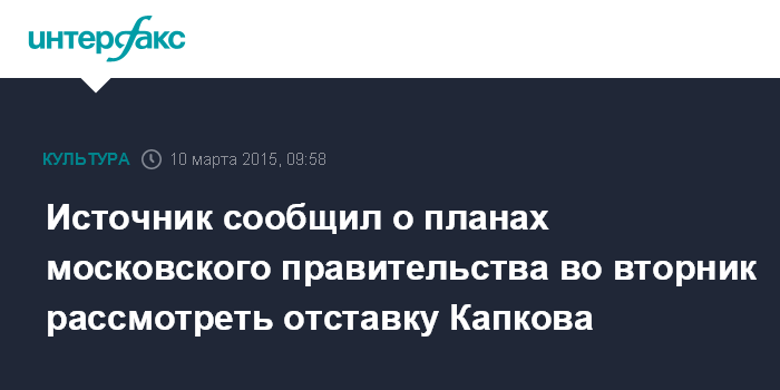 "Вопрос о возможной отставке Капкова, слухи о которой циркулируют в СМИ уже несколько дней, скорее всего, будет рассмотрен на заседании президиума столичного правительства во вторник в полдень", - отметил собеседник агентства.