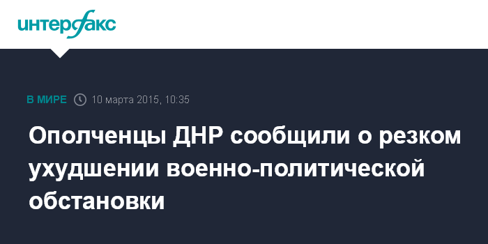 Москва. 10 марта. INTERFAX.RU - В самопровозглашенной Донецкой народной республике заявляют о резком ухудшении военно-политической обстановки в регионе.