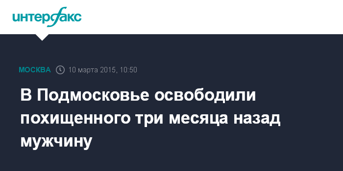 Москва. 10 марта. INTERFAX.RU - Подмосковная полиция освободила мужчину, которого три месяца держали в заложниках, сообщили во вторник "Интерфаксу" в пресс-службе ГУ МВД России по Московской области.