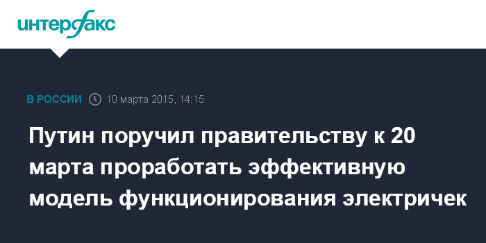 Путин поручил правительству к 20 марта проработать эффективную модель функционирования электричек