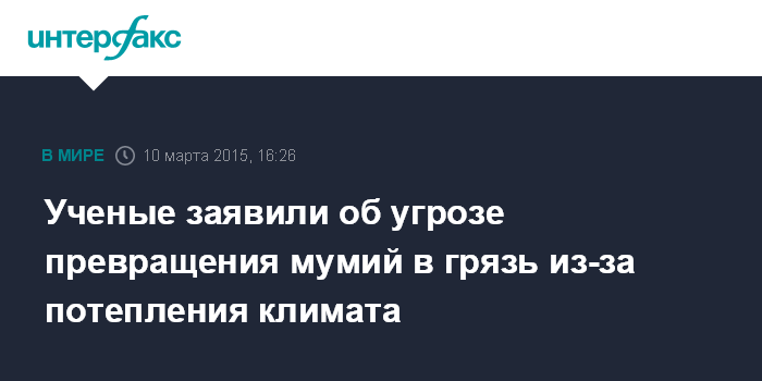 Москва. 10 марта. INTERFAX.RU - Древнейшие мумии в мире могут сгнить из-за климатических изменений, показывает исследование ученых из Гарварда. Об этом сообщает Bloomberg.