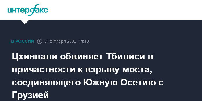 Цхинвали обвиняет Тбилиси в причастности к взрыву моста, соединяющего Южную Осетию с Грузией