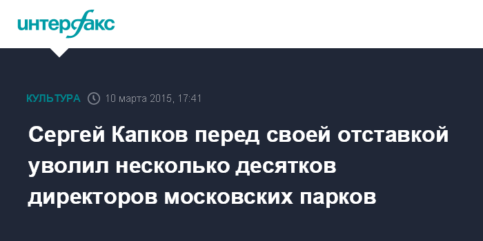 Москва. 10 марта. INTERFAX.RU - Экс-глава департамента культуры столицы Сергей Капков за несколько дней до своей отставки уволил до 40 директоров московских парков, сообщил "Интерфаксу" источник в ведомстве во вторник.