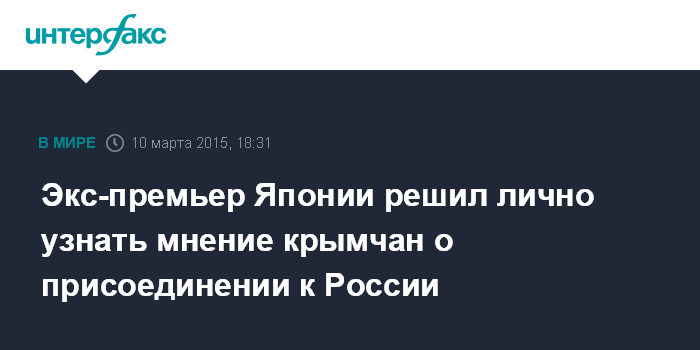 Экс-премьер Японии решил лично узнать мнение крымчан о присоединении к России