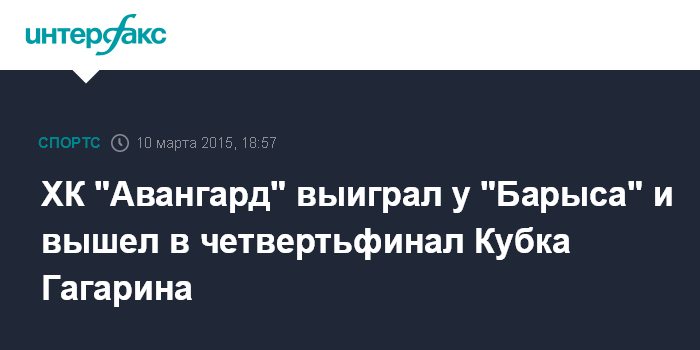 Москва. 10 марта. INTERFAX.RU - Омский хоккейный клуб "Авангард" завоевал путевку в 1/4 финала розыгрыша Кубка Гагарина КХЛ-2015.