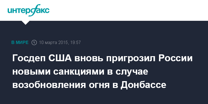 Госдеп США вновь пригрозил России новыми санкциями в случае возобновления огня в Донбассе