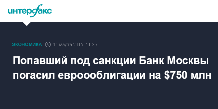 "Банк Москвы исполнил свои обязательства по погашению еврооблигаций на сумму $750 млн", - сообщили в пресс-службе банка.
