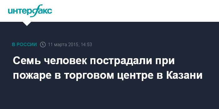 Москва. 11 марта. INTERFAX.RU - Семь человек госпитализированы с места пожара, охватившего в среду торговый центр "Адмирал" в Казани.