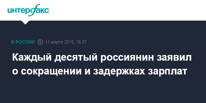 Москва. 11 марта. INTERFAX.RU - Около 15% россиян не исключают задержек зарплаты в течение ближайших месяцев, 5% - в течение ближайших недель, а 9% говорят, что это уже происходит, сообщили в среду в "Левада-Центре".