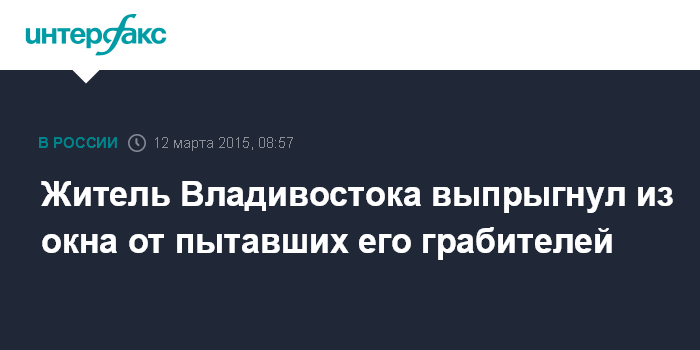 Москва. 12 марта. INTERFAX.RU - Полиция задержала подозреваемых в ограблении жителя Владивостока, которые ворвались в квартиру и пытали находившегося в ней мужчину, который сбежал он них, выпрыгнув из окна.