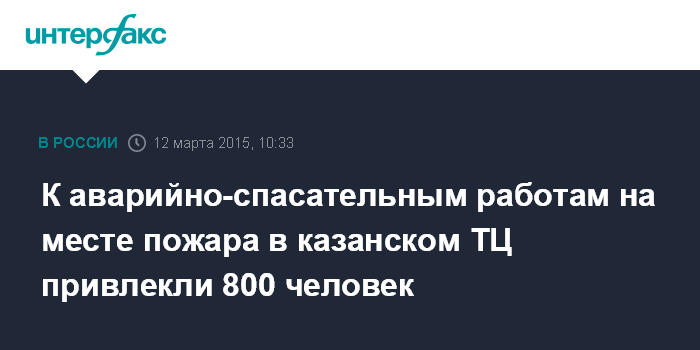 К аварийно-спасательным работам на месте пожара в казанском ТЦ привлекли 800 человек