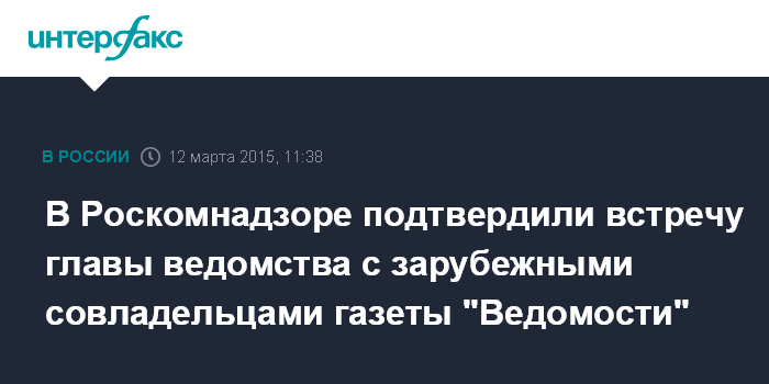 Москва. 12 марта. INTERFAX.RU - Иностранные совладельцы газеты "Ведомости" встретились с главой Роскомнадзора и, предположительно, обсудили закон о 20-процентном ограничении участия иностранного капитала в российских СМИ.