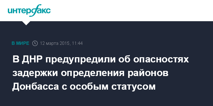 Москва. 12 марта. INTERFAX.RU - В руководстве самопровозглашенной Донецкой народной республики заявили об угрозе срыва минских договоренностей от 12 февраля, если Киев не определит в установленный срок перечень районов, которые предстоит наделить особым статусом.