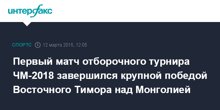 Москва. 12 марта. INTERFAX.RU - Сборная Восточного Тимора стала победителем первого матча стартовавшей в четверг отборочной кампании чемпионата мира по футболу-2018, финальная часть которого пройдет в России.