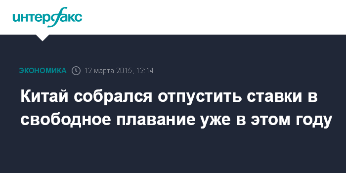 Москва. 12 марта. INTERFAX.RU – Китай намерен продолжить либерализацию процентных ставок, несмотря на замедление роста экономики, причем глава Народного банка Китая (НБК, ЦБ страны) Чжоу Сяочуань заявил, что это может произойти уже в 2015 году.