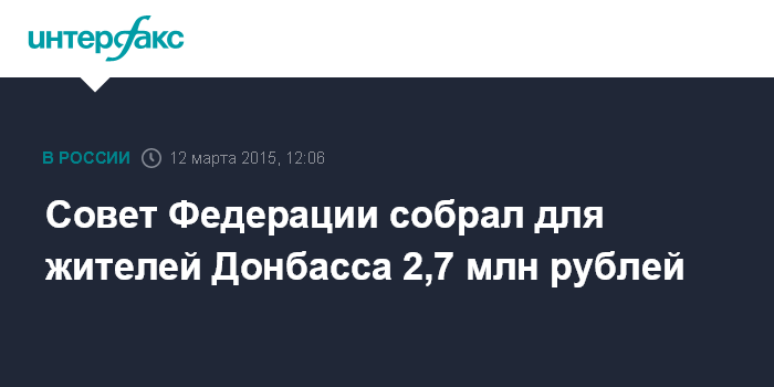 Совет Федерации собрал для жителей Донбасса 2,7 млн рублей