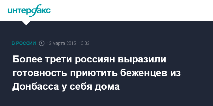 Более трети россиян выразили готовность приютить беженцев из Донбасса у себя дома