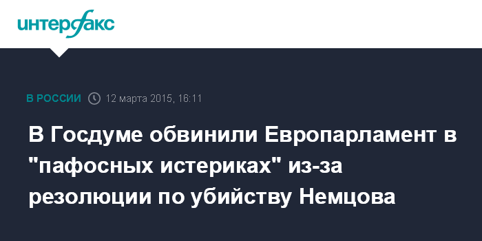 В Госдуме обвинили Европарламент в "пафосных истериках" из-за резолюции по убийству Немцова